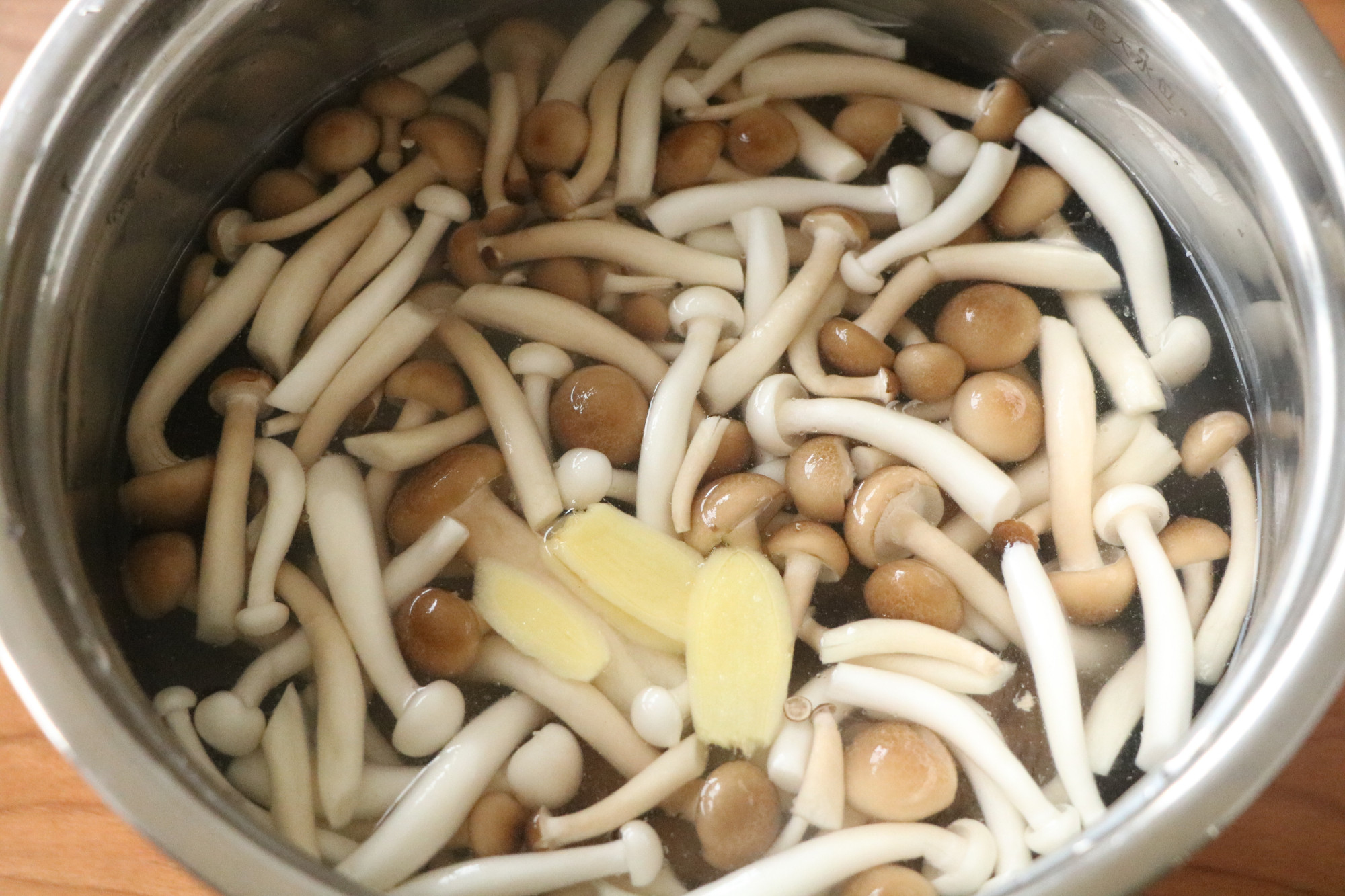 4、菌菇去掉根部清洗干净,沥干水分备用;