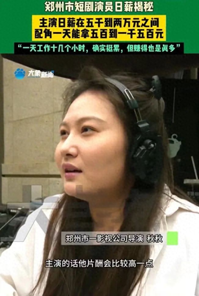 据媒体报道,河南郑州的短剧演员日薪非常高,主演可以在五千到两万,配角一天都能达到五百以上,有的人可以拿到一千五。