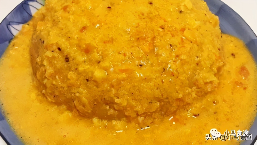 1.土豆去皮洗净,上笼大火蒸熟,碾成泥,装盘,做成火山形状。