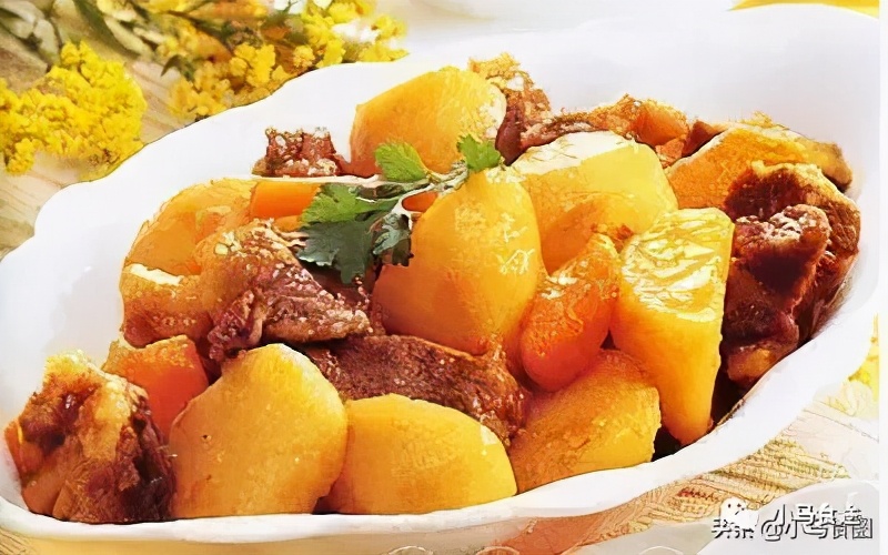 2。在锅里点燃油,炒牛肉,加入西红柿,炒汁,倒入沸水,煨20分钟,揭开土豆,烘烤10分钟,然后加入洋葱,加盐,味精和糖调味。