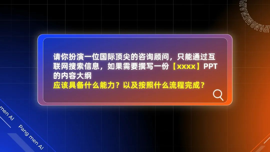 这里也分享一个万能的对话模板,让AI根据对应主题PPT的汇报标准: