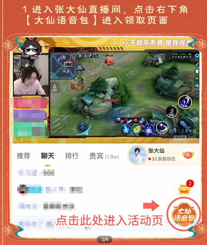 语音包虽然说没有皮肤来的那么直观,但是更多的作用是拿来嘲讽对面,这是英雄皮肤所不具备的特征,这次官方商家的语音包还跟一名主播有关,这名主播就是虎牙王者荣耀分区的头部主播张大仙。