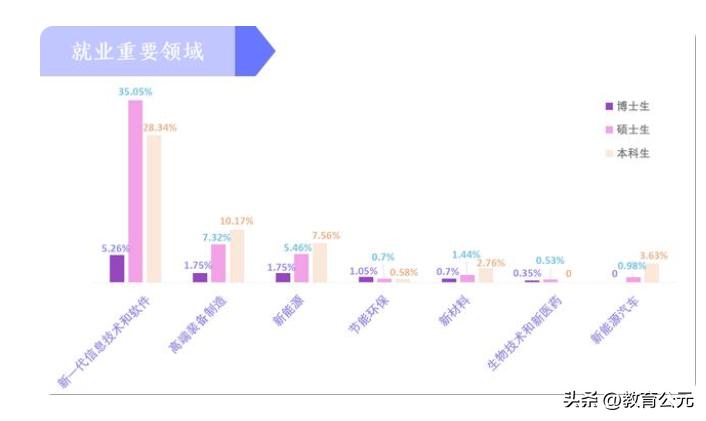 毕业生就业行业分布,就业领域主要是信息技术和软件,高端装备制造、新能源等。当然也有一些优秀毕业生进入了华为、国家电网、移动等优秀企业。