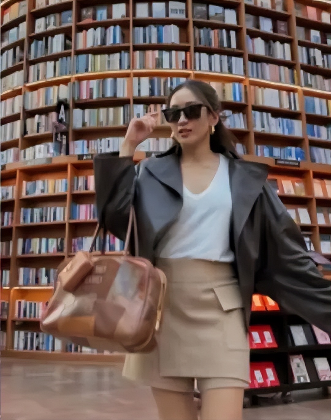 她还喜欢酷拽硬朗的皮衣夹克,Miu Miu的各种复古夹克掀起了巴恩风的流行,在社交媒体上很受欢迎。