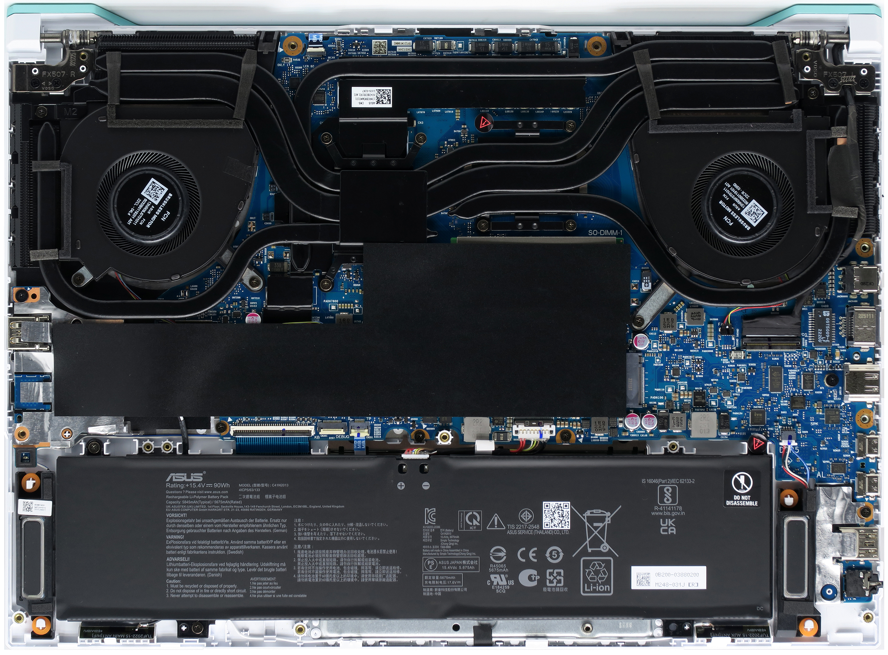 扬声器嘛,坦率个头挺小的(上图电池两侧),音质没有问题,但是声音表现力对比起万元的价格,只能算是“合格”水平。而好评是90Wh的电池,这个真心给个赞。另外M.2插槽有两个,游戏本的标准设计。