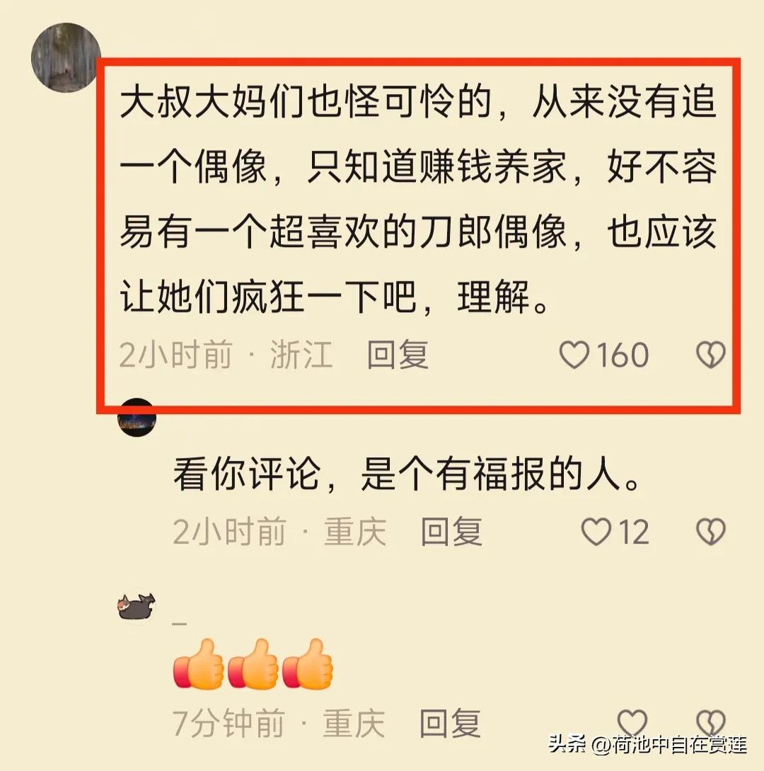 重庆的网友调侃说,追星,原来并不是年轻人的专利。