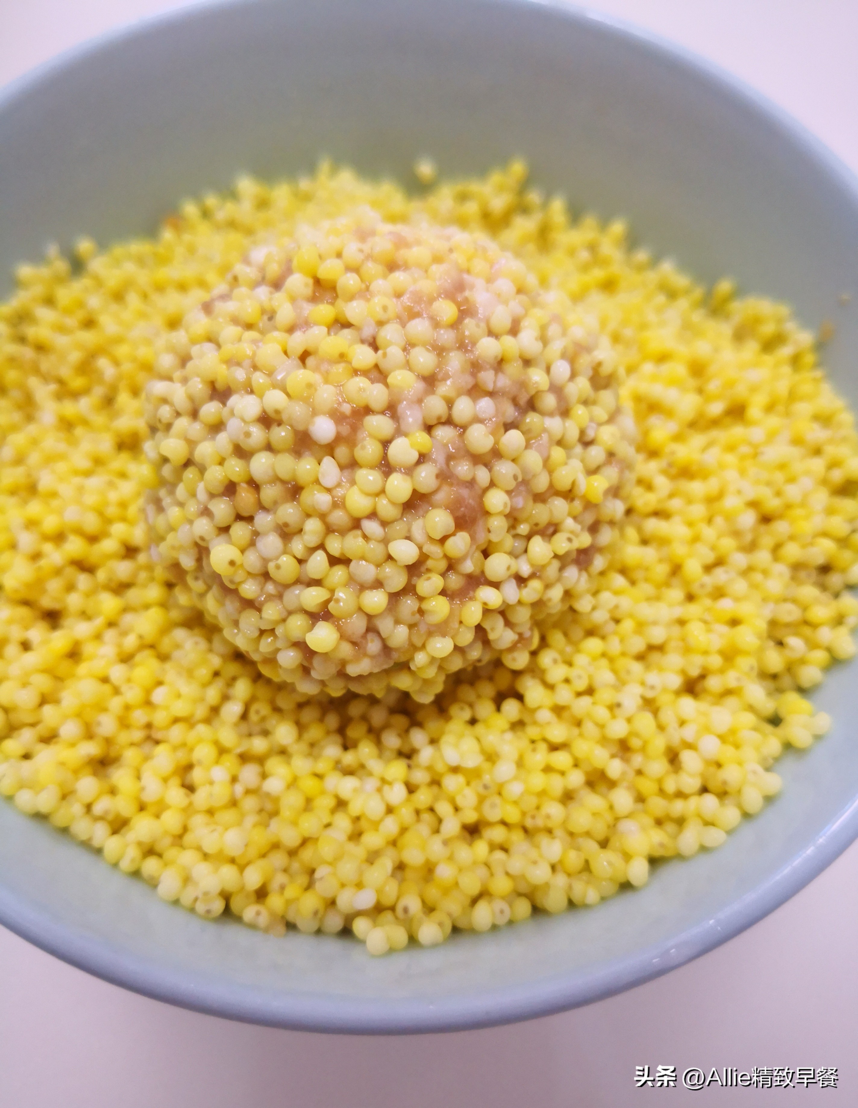 肉丸子,外形圆圆滚滚的,寓意团团圆圆,是我们家过年过节必不可少的一道菜肴,做法多样,有先煎再炖煮的,外焦里嫩,香浓入味;有直接加到汤里的,鲜嫩多汁更清爽...各有风味,今天分享我做的肉丸子,不煎、不煮、不做汤,加上这一样粗粮,金黄软糯,好看好吃更营养,再加上包粽子剩的边角料粽叶,清香味美,满屋飘香,出锅后一盘没够吃,建议大家端午节可以安排这道菜,除了好吃好看好寓意,还好消化更健康,适合大多数人吃。