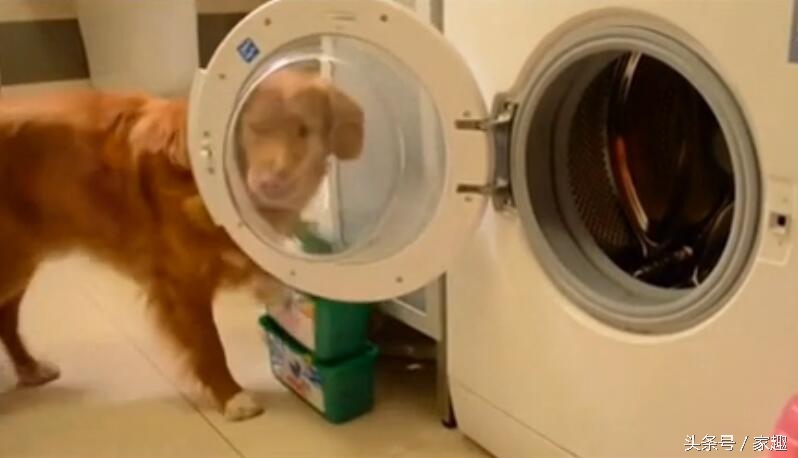 狗狗居然会使用洗衣机,模仿洗衣机转动,洗完还叼出衣服,神了!
