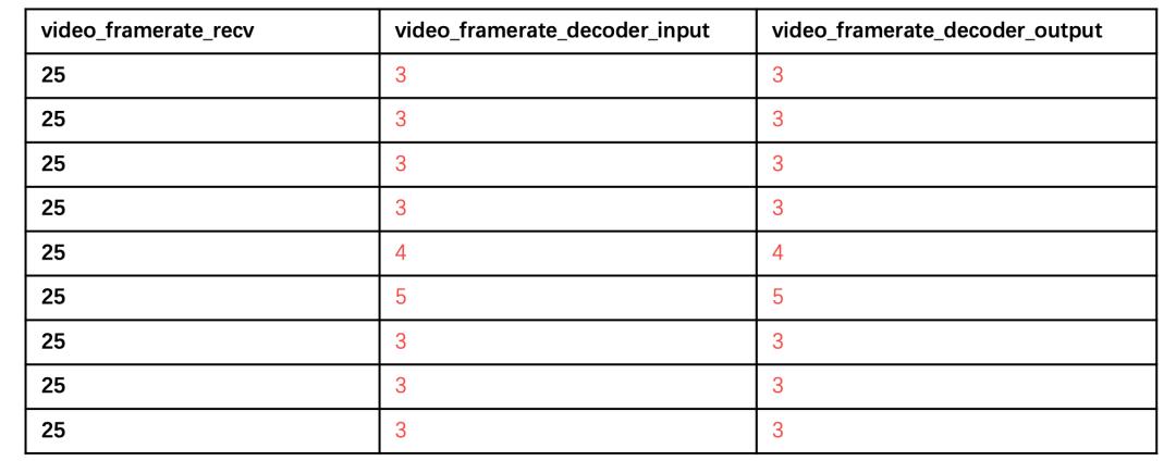 未调优时候经过 AB 实验发现,RTM 的视频卡顿大幅度上涨,跟预期不匹配,对此团队分析了线上的大量日志数据观察。当前的硬解具有核心用户体验指标的收益,但卡顿是 FLV 的将近 3 倍,分析了大量线上 badcase,发现部分机型网络条件较好,但帧率却极低,类似下表这种:
