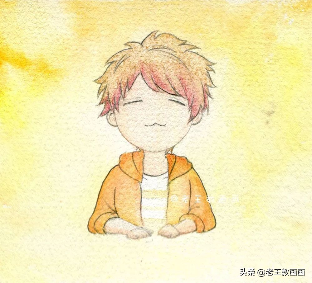 >>>【第6步】:用黄色水彩画头发的固有色,然后用红色彩铅在固有色上叠加一层(P6↓)
