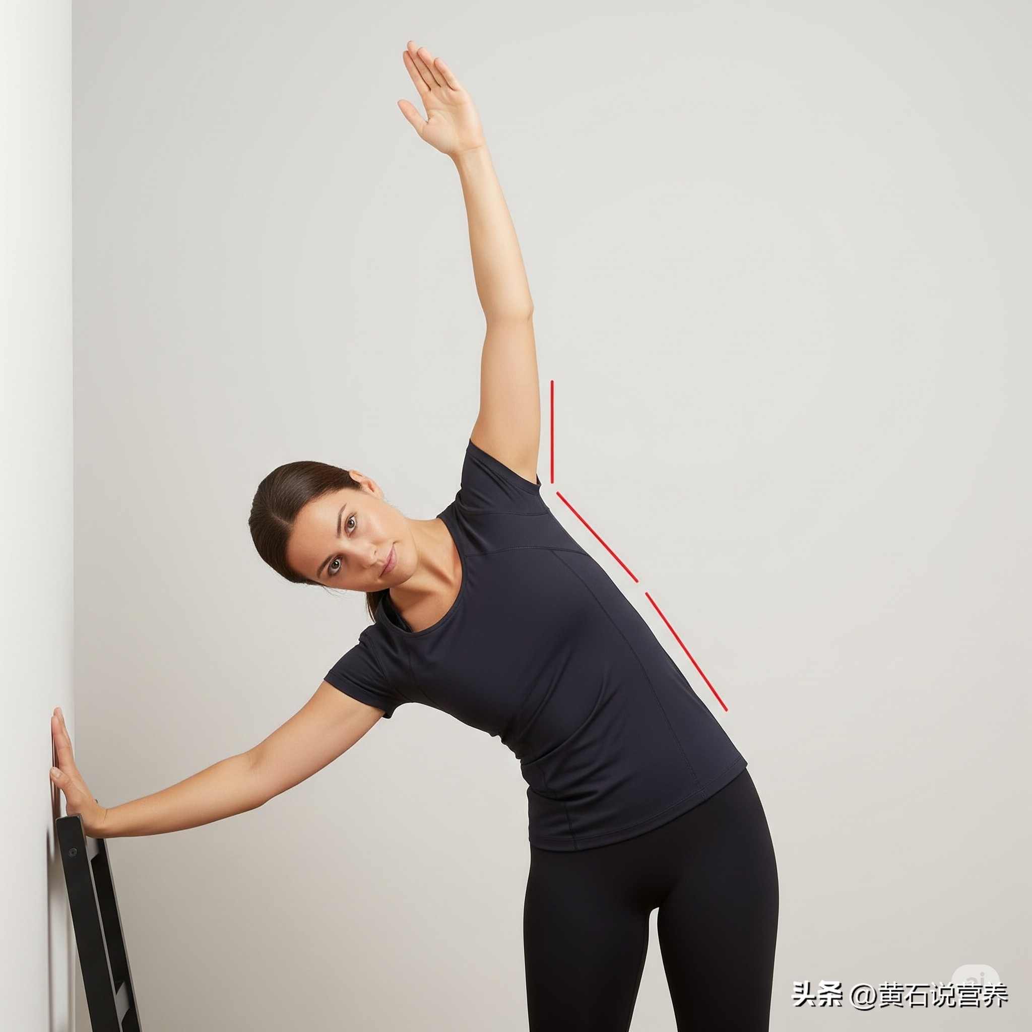 身体朝对侧缓缓侧弯,像画弧线一样拉长身体侧面。