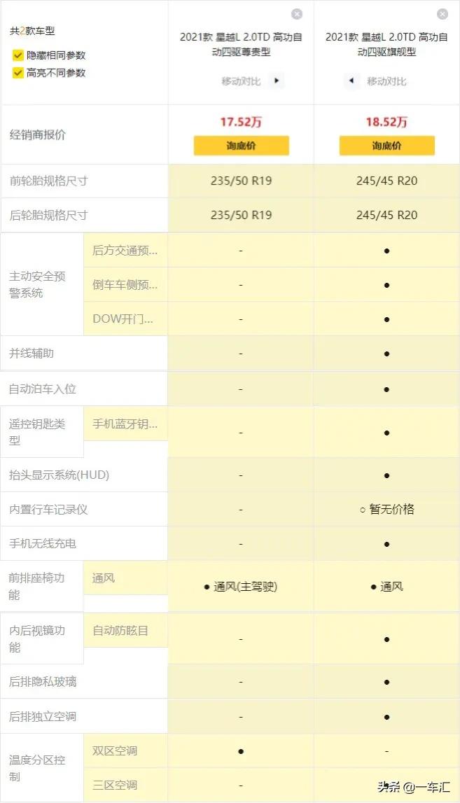 2021款 星越L 2.0TD 高功自动四驱尊贵型,厂商指导价:17.52万元。