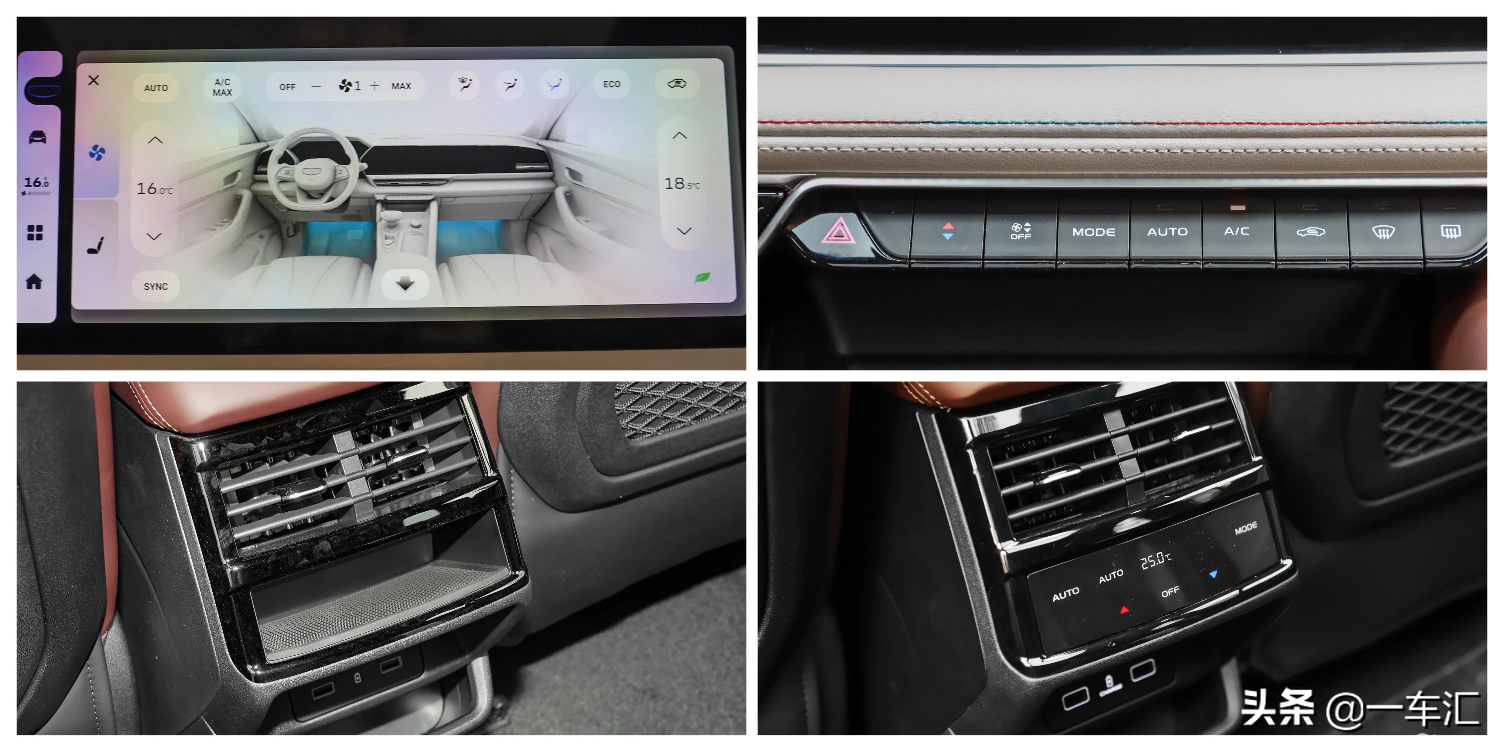 全系除最低配舒适型采用的是前排单温区自动空调外,其它5款车型均为前排双温区自动空调系统,标配后排空调出风口和车内PM2.5过滤装置,两款旗舰型还升级为后排独立空调。前排空调面板位于中控台边缘,采用一排整齐的按键组合,除此之外,还可在中控屏幕内调节,日常使用便捷顺手。