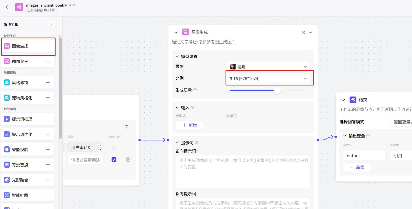 添加图像生成工具,设置好比例