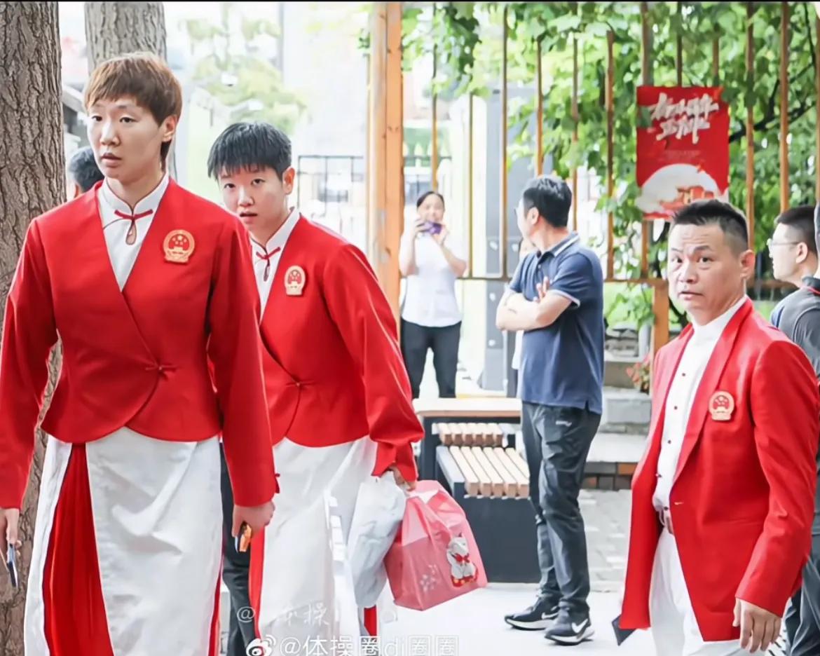 8.20日下午,巴黎奥运会运动员全部返京参加表彰大会,大会要求全部运动员一律穿正装,也就是之前开幕式穿的衣服,当时的开幕式,孙颖莎因为比赛临近便没有去参加,也就没有机会看到莎莎穿旗袍,如今表彰大会终于来啦,莎莎也不得不妥协穿上小裙子和小高跟鞋啦!