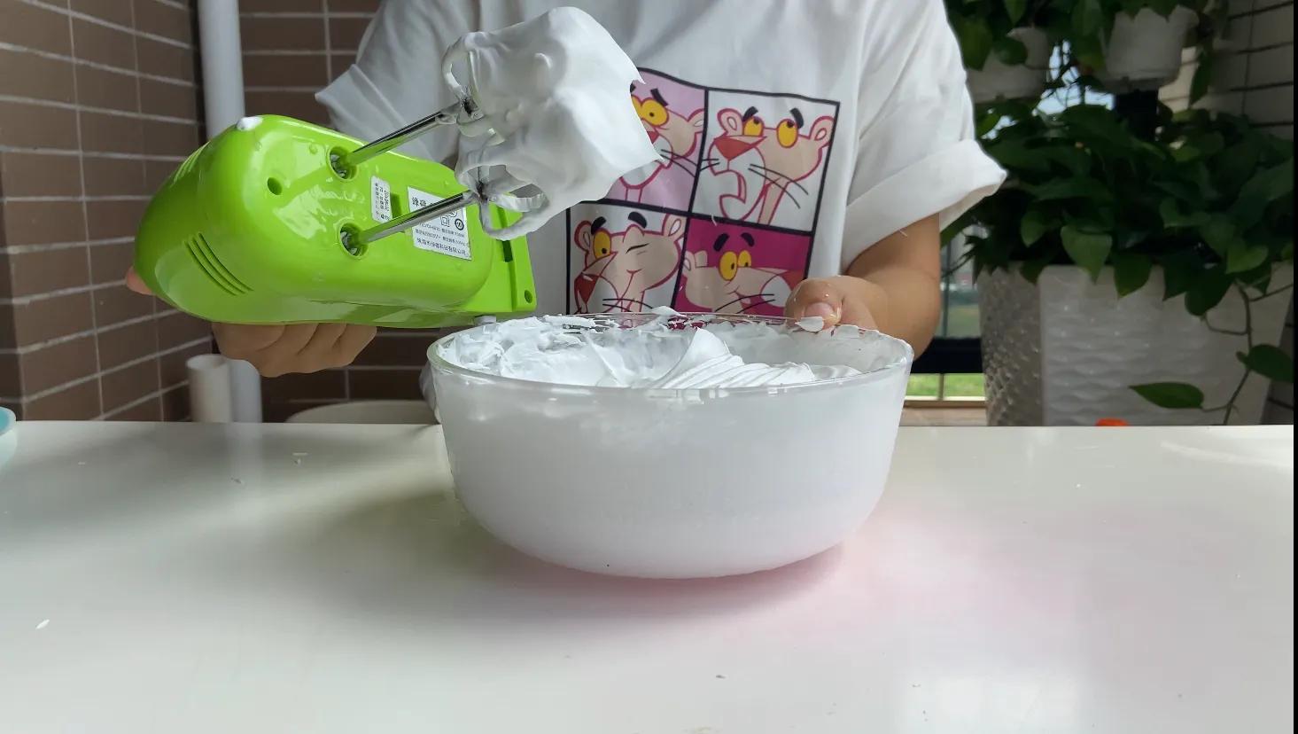 材料:4个鸡蛋,60克白砂糖,170克低筋面粉,40克玉米油,430克纯牛奶,300克淡奶油。