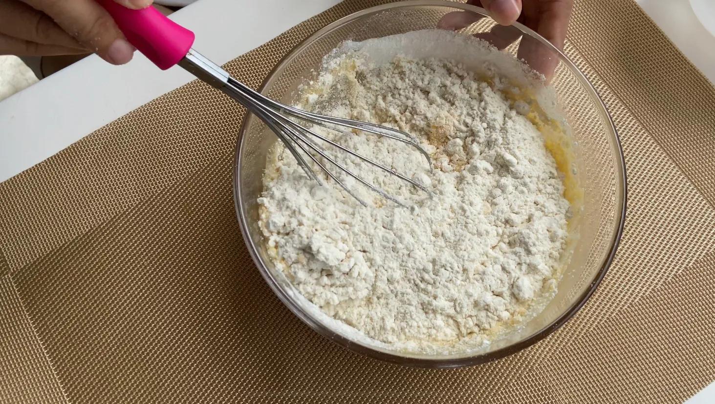 2.加入170克低筋面粉,搅拌至没有干面粉。