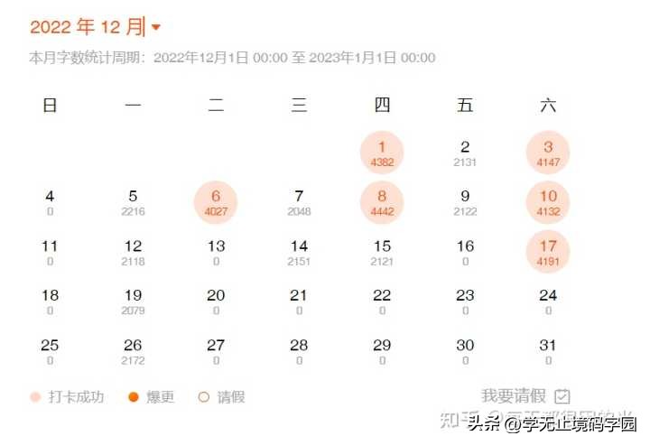 接下来给大家看一下我22年12月的码字情况