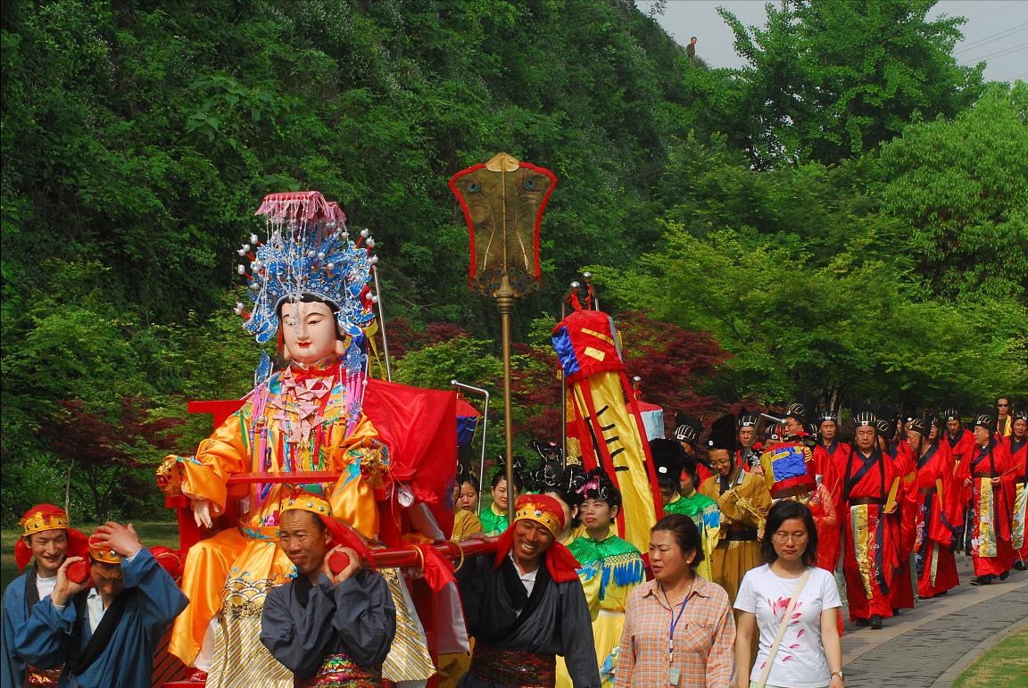 除了正式的庆典仪式外,还有一些民间习俗也很有意思。比如在天津一带有一种叫做“黄会”的活动,也叫“娘娘会”。这是专门为了求子而举行的活动。届时妇女们会来到天后宫,在那里有一间专门供奉妈祖的寝室,里面有一张龙床。想要生男孩的妇女就要用手摸一下龙床上的白花,想要生女孩的就要摸红花。摸完花之后就要把花插在自己的头上,这样就能得到妈祖的祝福,早生贵子。