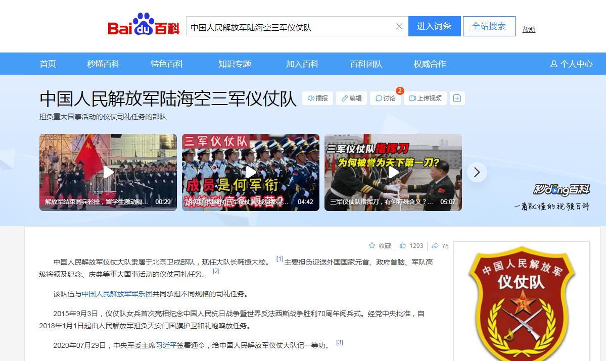 https://baike.baidu.com/item/%E4%B8%AD%E5%9B%BD%E4%BA%BA%E6%B0%91%E8%A7%A3%E6%94%BE%E5%86%9B%E9%99%86%E6%B5%B7%E7%A9%BA%E4%B8%89%E5%86%9B%E4%BB%AA%E4%BB%97%E9%98%9F/3826337?fr=ge_ala#5