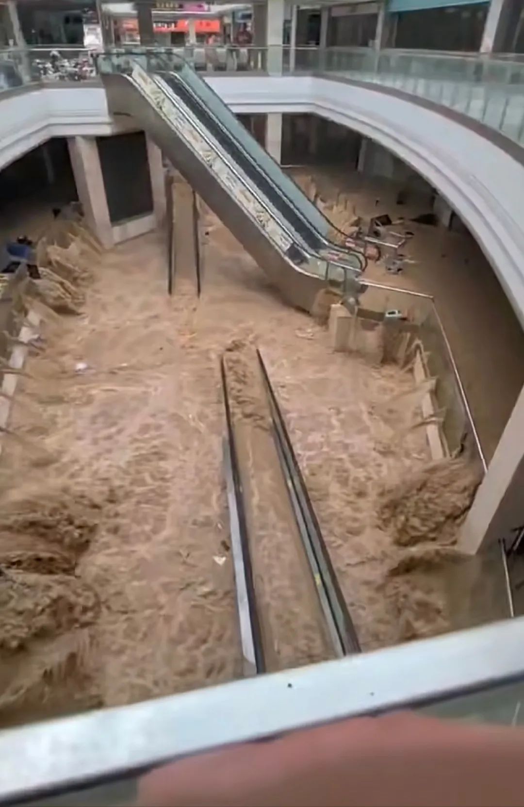 潇湘晨报记者注意到,有多名当地网友发布汛情视频,有视频显示县城最大商场已被淹没,有洪水不断往里灌,村超球场10分钟内便被淹没。有网友称四岁儿子和爷爷去榕江走亲戚被困楼上,所幸在10楼,洪水现已到第三楼位置。