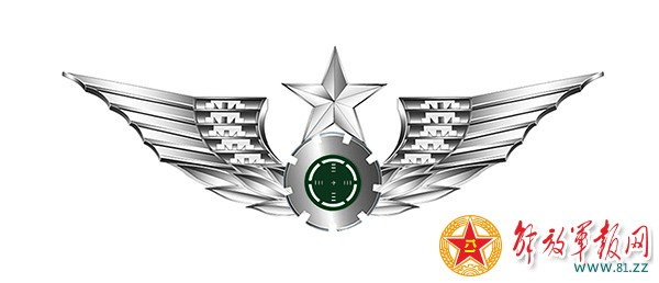 陆军胸标。设计风格与07式陆军胸标相差较大,设计元素也由象征传统陆军装备的步枪改为反映现代新型陆军的机械化作战装备、陆航元素等,反映了陆军按照机动作战、立体攻防的战略要求,从区域防卫型向全域作战型转变而产生的新变化。履带和机翼抽象而成“V”字形底托,底托中间镶嵌银色五星,五星下方为车(齿)轮与枪炮口加“十”字形瞄准线抽象而成的圆形图案,两侧配橄榄枝,“V”字两条边以装甲履带抽象而成,并分别向外延伸形成机翼象形图形。用履带、机翼象征现代陆军三大主力装备:火炮、坦克、直升机,用车(齿)轮、枪炮口、“十”字形瞄准线组合标志象征机械化装备和精准打击,体现了现代陆军“全域机动、立体作战”的特点,寓意“精确打击、百战百胜”。
