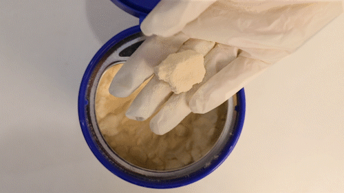 奶粉智库评测中心的小伙伴从实验室随机挑选了1款未开罐的奶粉,我们将奶粉打开,放置在干燥、阴凉、避光的环境中,每天定时观察奶粉颗粒、粉质及气味的变化,并做好记录,试验共进行4周(28天)。接下来我们就来看看这4周时间里,奶粉都发生了哪些变化吧~