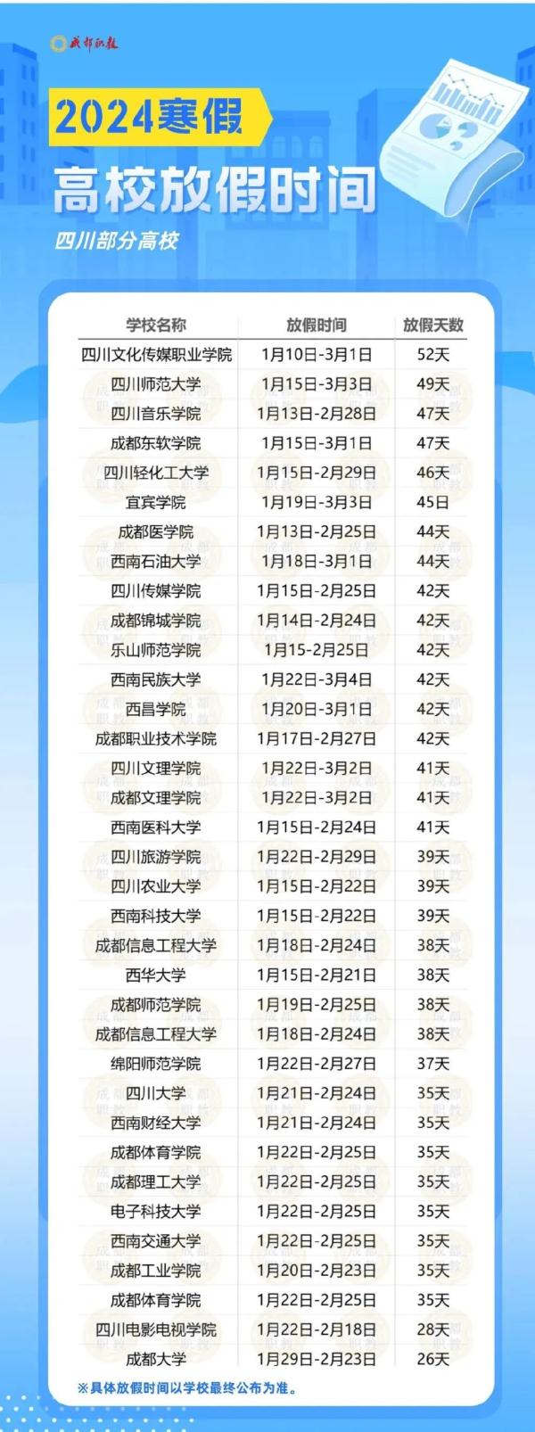 以上数据来自各高校校历,以本科生放假时间为主,如有出入以各校实际放假通知为准
