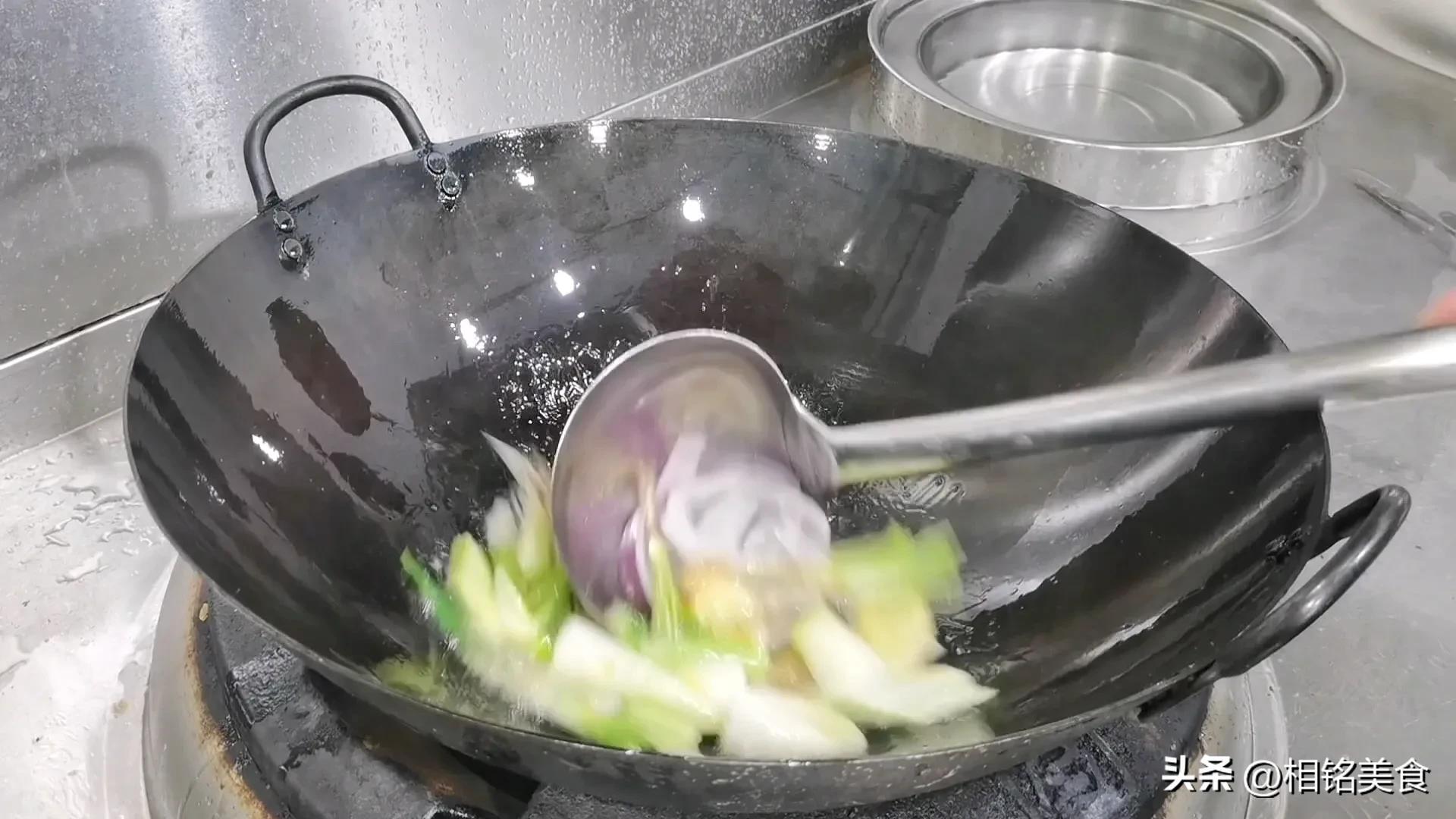 炒至香味融合大约半分钟左右,下入腌牛肉的酱油;
