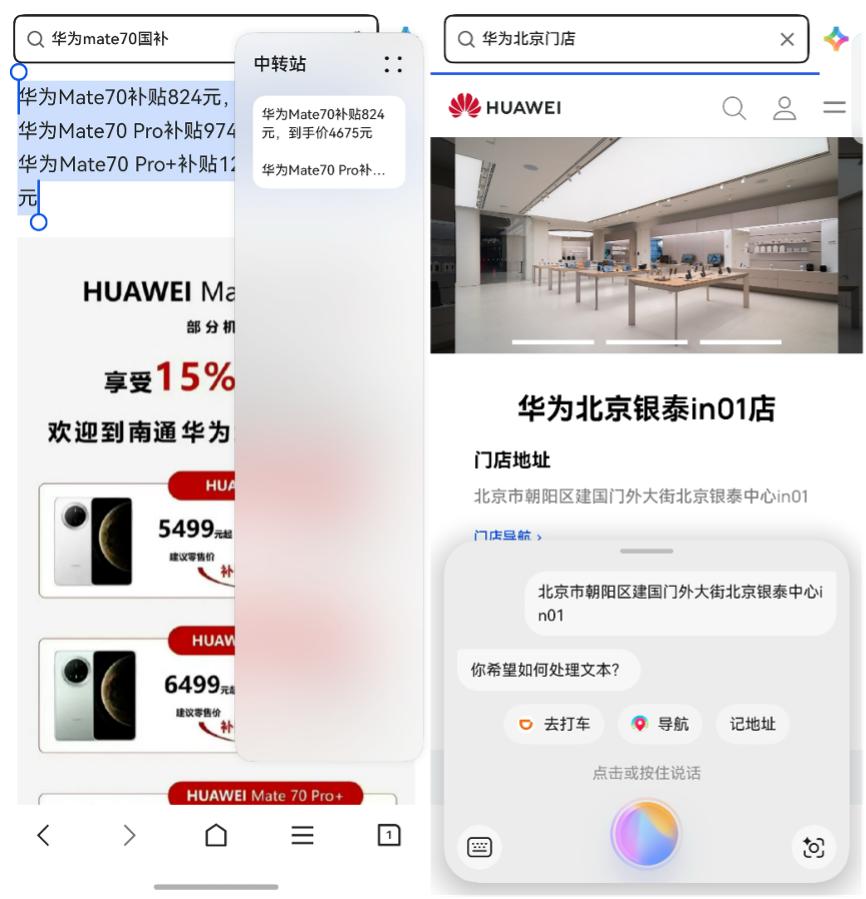 平时在网上“冲浪”时碰到喜欢的图文想保存和分享,普通浏览器只能长按复制文字或下载图片,而鸿蒙原生版QQ浏览器支持了原生鸿蒙的统一拖拽能力,长按选中图文后,往上拖到“中转站”就能暂存内容,后续查看、分享都方便;往下拖给小艺,还能让它帮忙扩写、改写、润色和总结内容,小艺甚至能智能识别图文里的时间、地点,并提示用户创建日程、开启导航或打车,主打一个贴心!