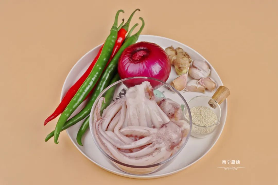 鱿鱼肉质鲜嫩筋道,配上辣椒和洋葱的辛辣,还带有一丝丝甘甜,每一口都散发着鲜香的口感,香辣爽口怎么吃都不腻!