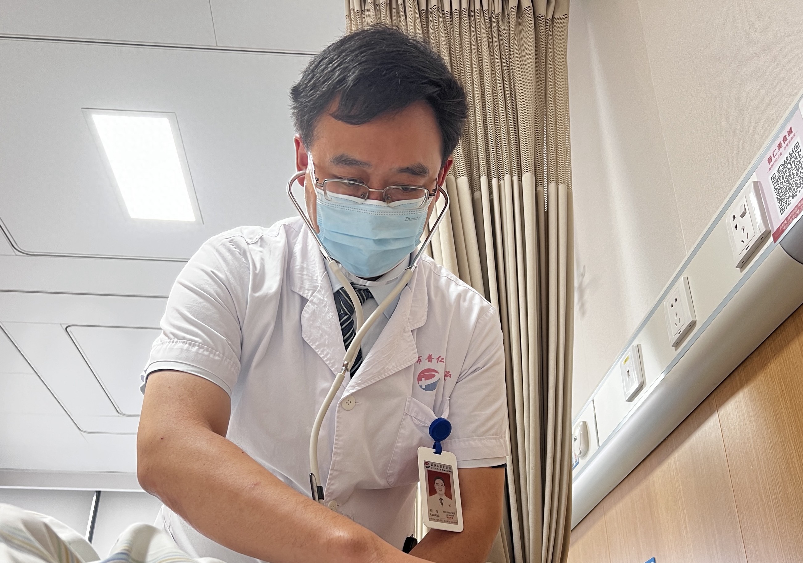 程伟正在给患者做检查。