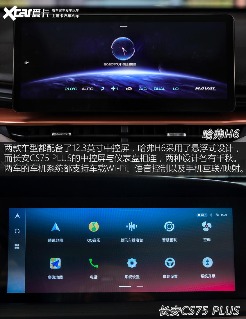 | 多媒体配置: | 2021款哈弗H6 第三代 1.5T Supreme | 2020款长安CS75 PLUS 2.0T 自动领航型 |