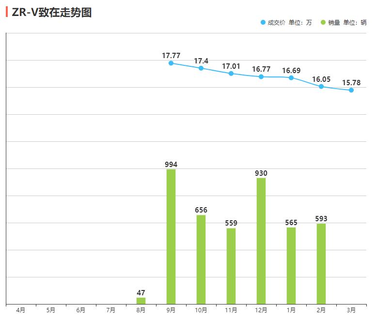2023年对于本田来说,开局有些艰难,本田中国发布的中国市场终端销量数据显示,其今年3月在华销量仅为82041辆,同比下跌接近19%;1~3月总销量为220367辆,同比下跌37.7%;其中,东风本田1~3月总销量为102441辆,低于去年同期的168936辆。在国内油价处于较高水准的情况下,有越来越多的消费者开始主动选择插电混动或电动车,因为它们比很多日系车更省油,而这或许也是本田销量下跌的原因之一。HR-V的姊妹车型ZR-V致在,在上市之后表现一般,今年前两个月的总交强险数仅为1242辆,已经属于市场上的边缘车型。在去年8月以来,ZR-V致在还未能实现月交强险数超过1000辆。