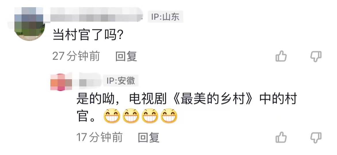 不过,也有网友询问黑子是否真的当了村官,有人解释是当了电视剧中的村官,但无论是剧中,还是现实,黑子纯朴、接地气的形象都给大家留下了深刻的印象。