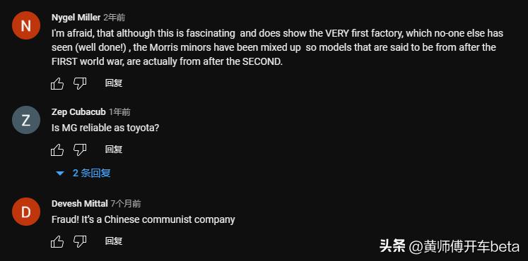 那外国人怎么看呢?某个印度老哥的视频下面,总共只有三个评论,但我觉得非常有代表性,一个说MG的工厂不错,比他见过的都牛逼,一个在质疑MG是不是和丰田一样可靠,最后一个说拉倒吧,这就是个中国公司,大家应该能想象得到它背后的语气,以前会让人觉得不舒服,现在只是让人发笑。咋说呢?不如上天去告诉你们老佛爷,洋人的汽车已经开到你们家门口了!