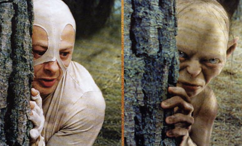 2001-2003年,《指环王》系列电影称得上是动作捕捉的标杆之作。那时“咕噜”的镜头要制作三遍:第一遍是演员穿着白色衣服进行实拍;第二遍是电脑中将演员擦除一边放置咕噜;第三遍才是演员穿着带记录点的动作捕捉衣进行表演。这样做的原因一是因为当时的服装只能捕捉少量的基本数据点,二是由于演员与咕噜的体型差异过大,最终要想完美的效果仍需动画师来完成。