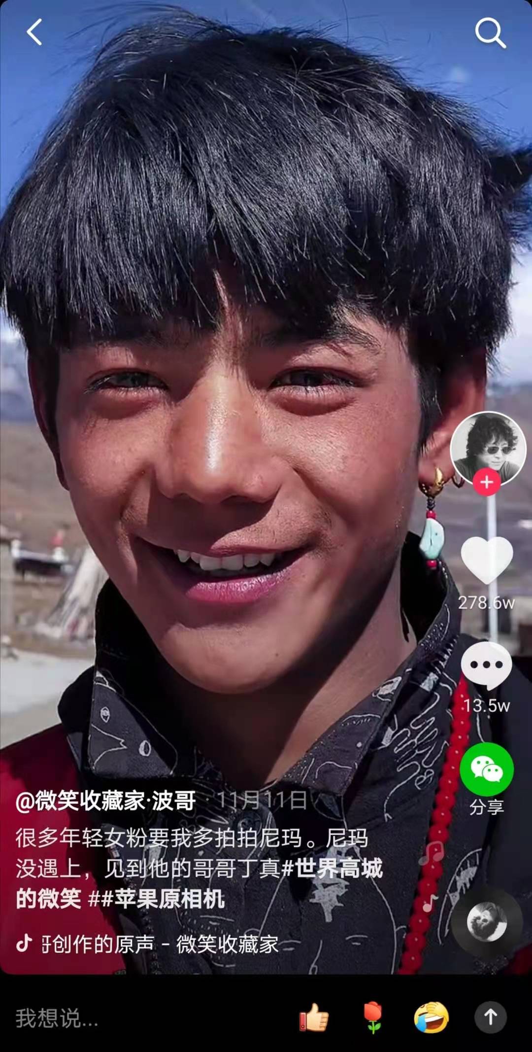 “微笑收藏家波哥”一直在拍藏区的牧民,都是突出五官的大特写。今年8月,他的社交平台出现了丁真的二舅四郎罗布。四郎眉峰锐利,是一个成熟的男性形象。