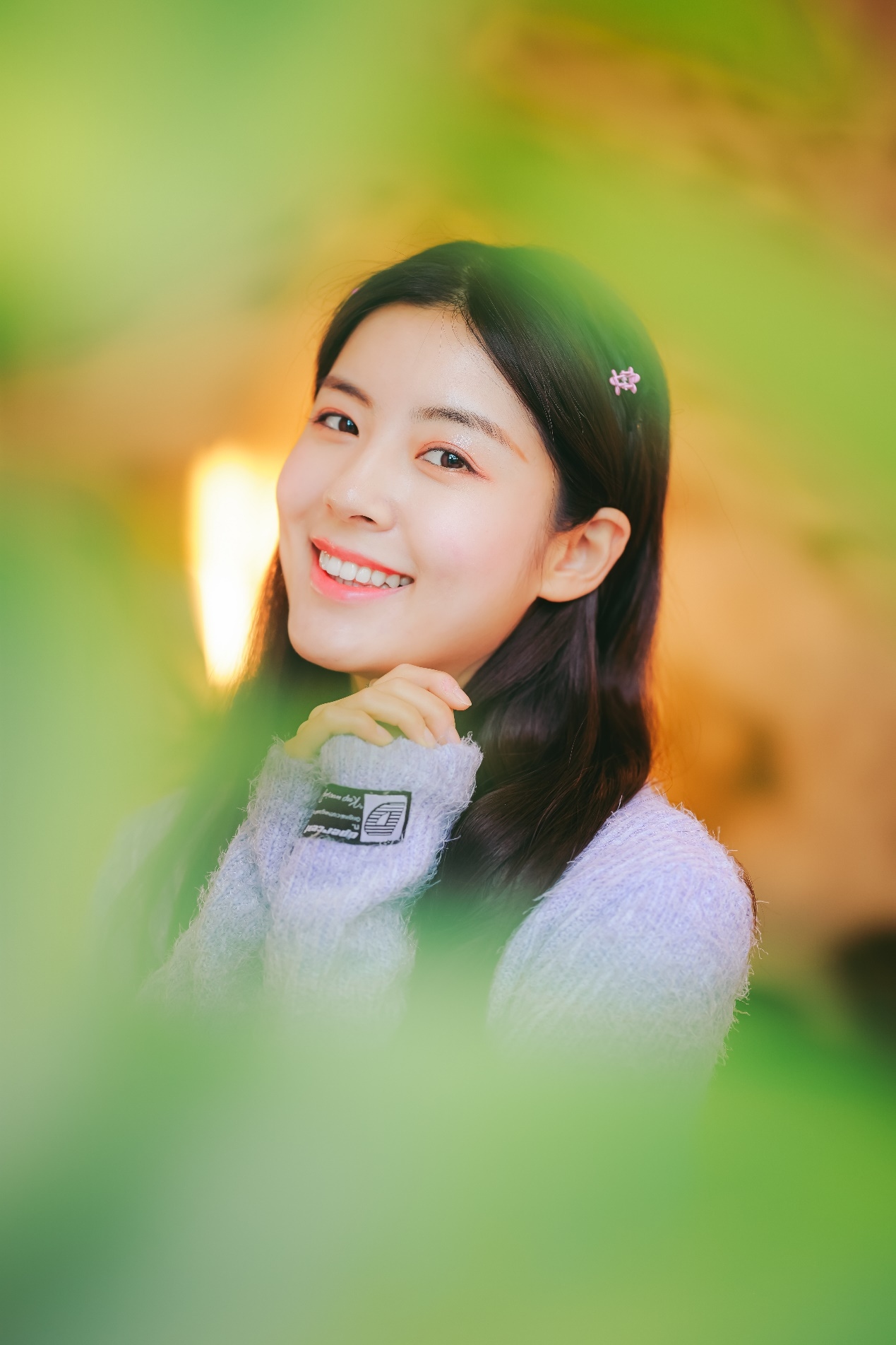 我们还可以寻找各种可利用的前景,并且通过RF85mm F1.2 L USM DS超大的光圈和极浅的景深营造出梦幻的感觉,比如橱窗的玻璃、花丛等,不仅增加了整个画面的氛围感,更是为我们的人像作品带来一股梦幻的气息。