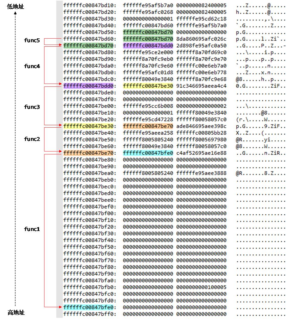 场景1:func4的栈帧和func1的栈帧完全重叠