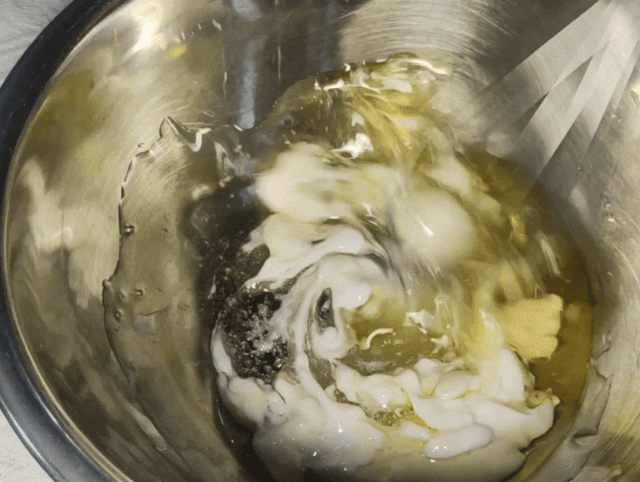 大碗中倒入油、白糖和酸奶。
