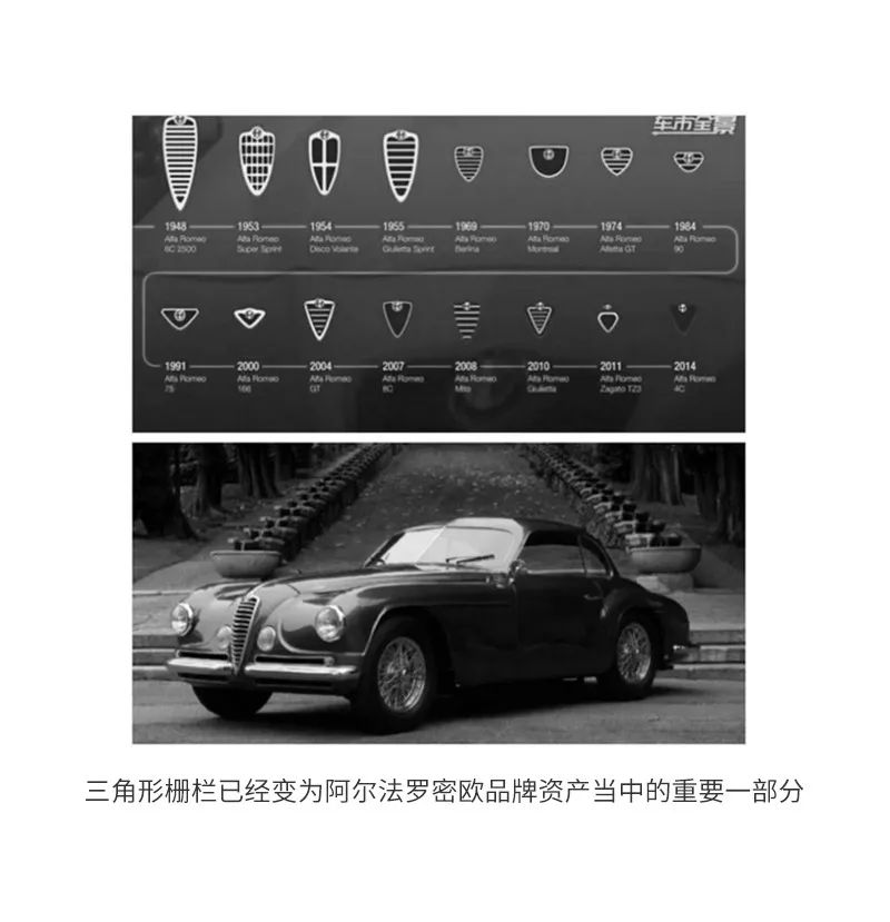这个我们理解为三角形的栅栏其实原意是指一个盾牌,是1947年时候由一款叫6C2500的车型所开创的图形,因为对辨识度而言实在太好使用。