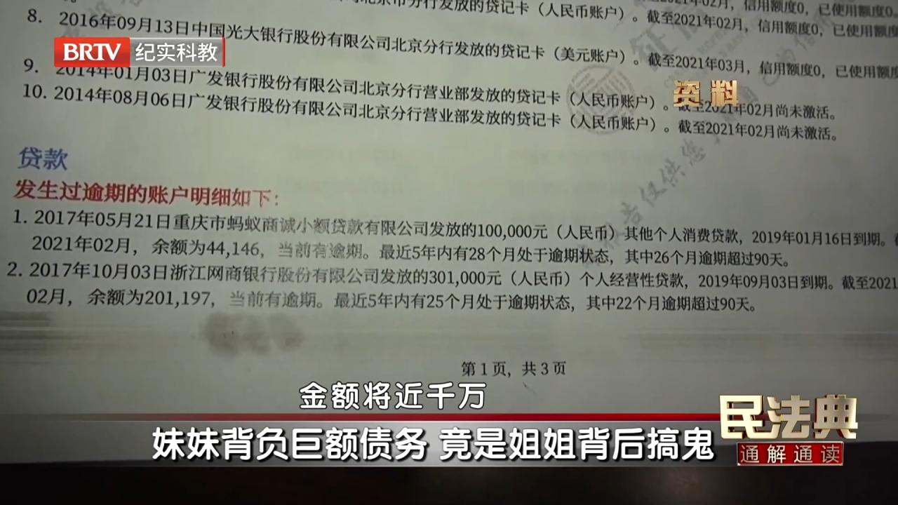 明明是姐姐欠下的千万债务,却落到了妹妹名下,李女士回国后数次成为被告、被执行人,在个人征信系统里查询更是让李女士不寒而栗,千万欠款给李女士的个人信誉造成了严重影响,而李女士的姐姐自从事情发生后,就躲了起来,不见踪影。