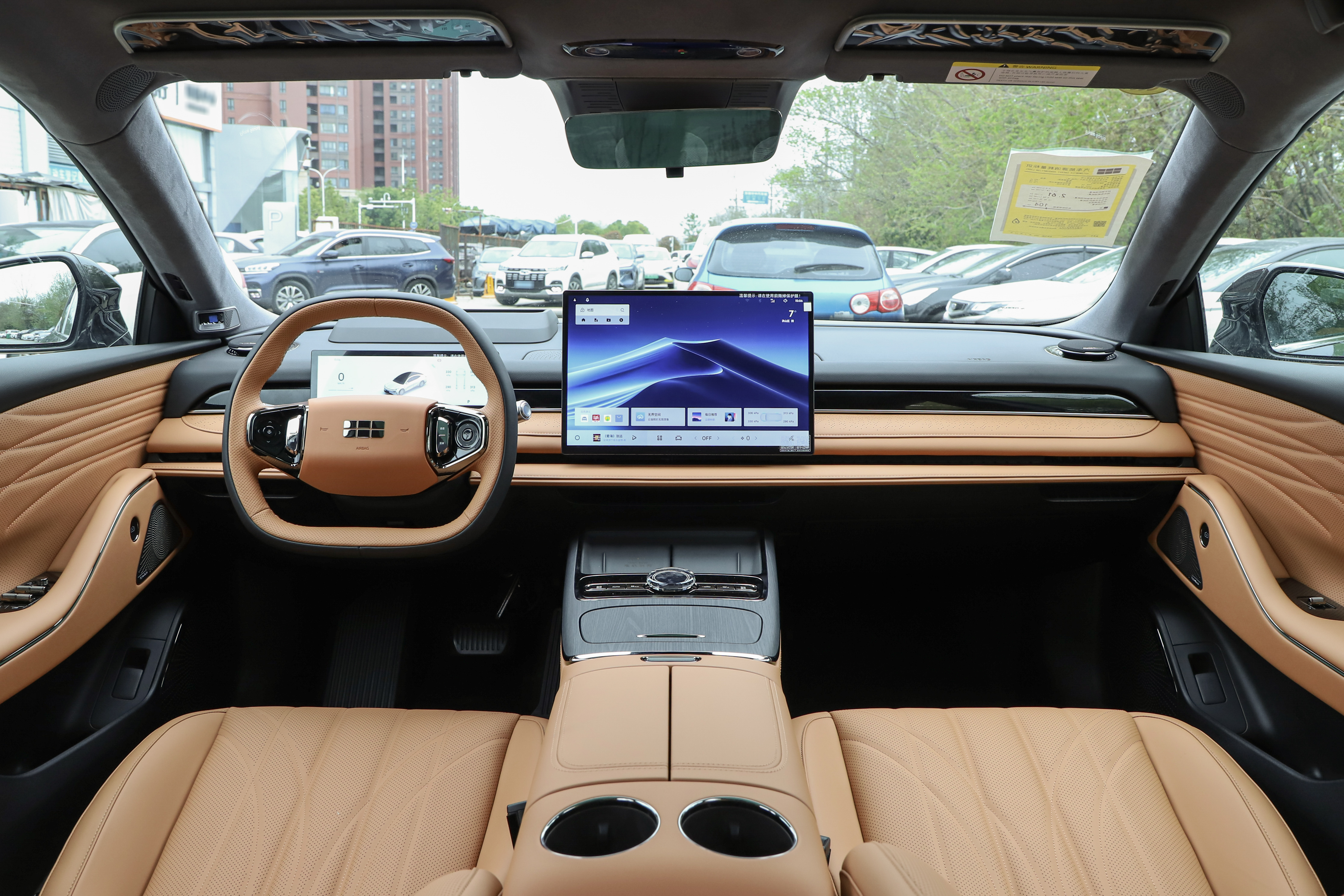 内饰部分,两台车都采用了大面积的皮质/软质包裹,两幅式平底方向盘以及大尺寸悬浮式中控屏甚至也都保持了高度的一致,都有着不错的质感。