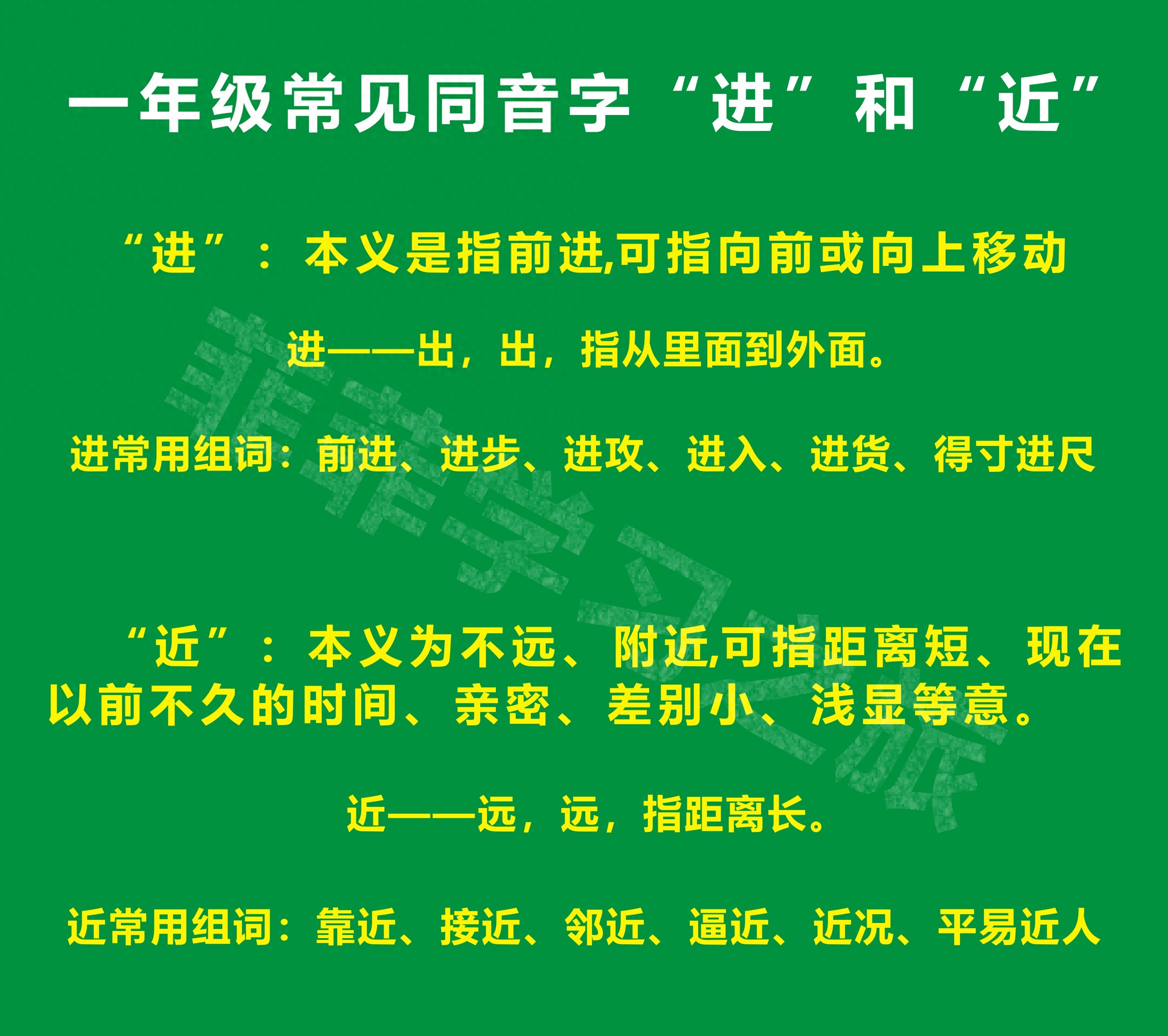 同音字“进”和“近”的区别和用法,一年级同音字进和近解析