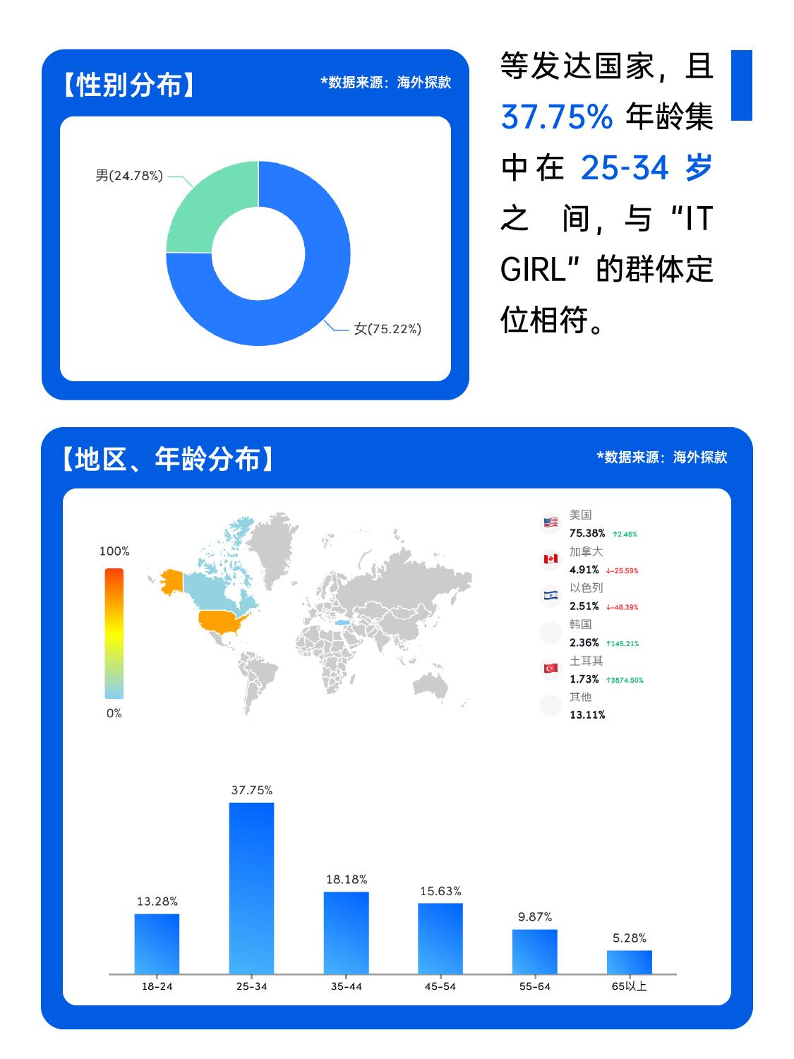 4️⃣ 投放策略:Alo的主要投放的社媒是INS与Facebook,流量占比分别为24.84%与23.91%。
