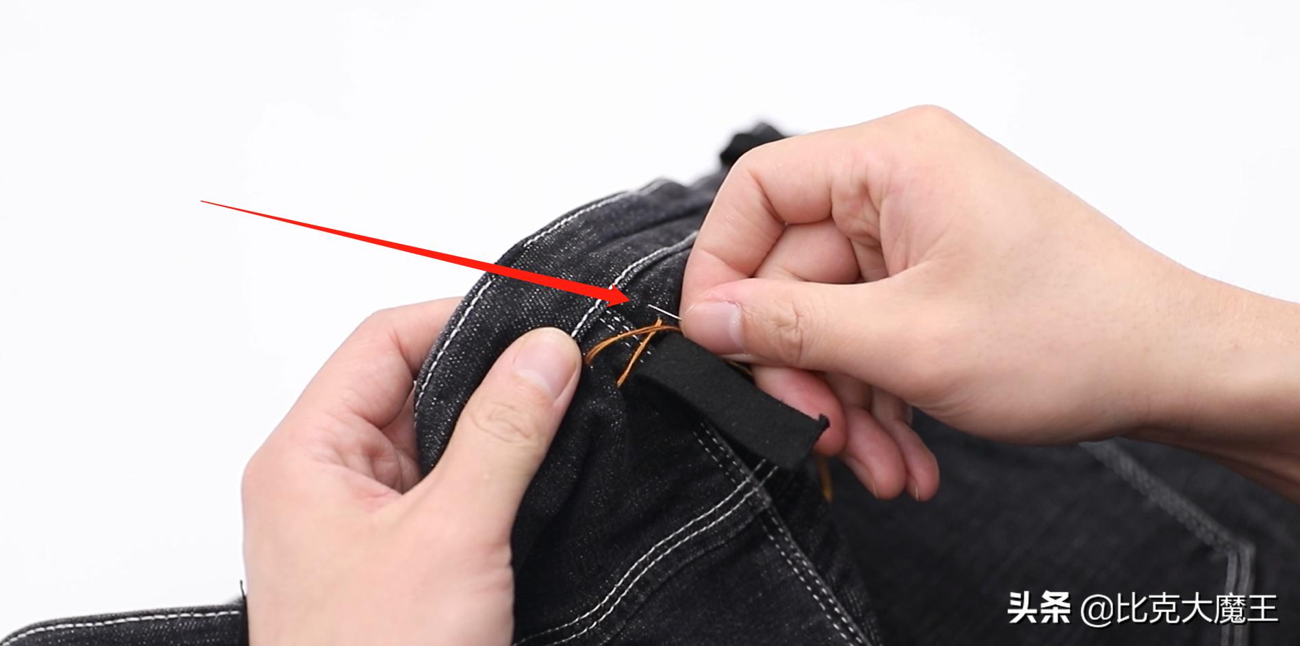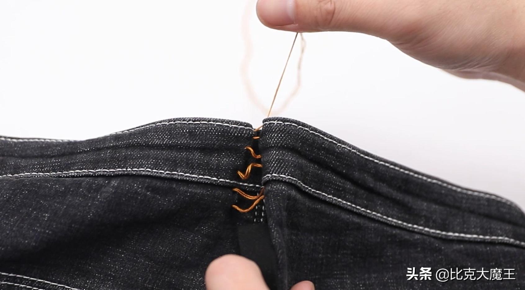 裤子裤腰大了不要扔!裤子这里缝一缝轻松收裤腰,方法太实用了