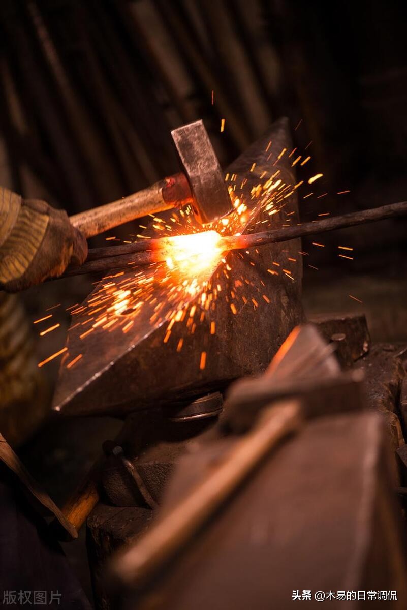 在打铁时,要保持身体平衡稳定,双脚分开与肩同宽,脚尖稍微外展。双手握住大锤柄,保持手臂放松,肩膀自然下沉。下蹲身体,蓄势待发,然后向上用力抡动大锤,将其砸向铁块。