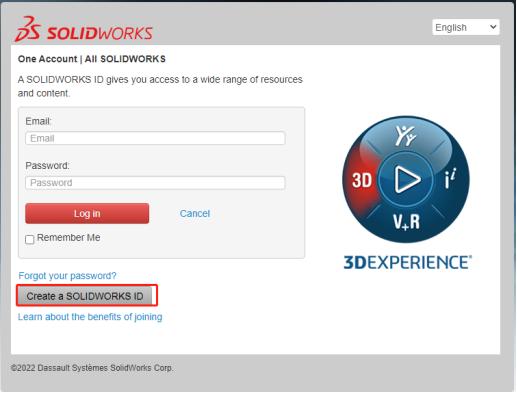 3. 选择“Create a SOLIDWORKS ID”创建一个SOLIDWORKS ID账号;
