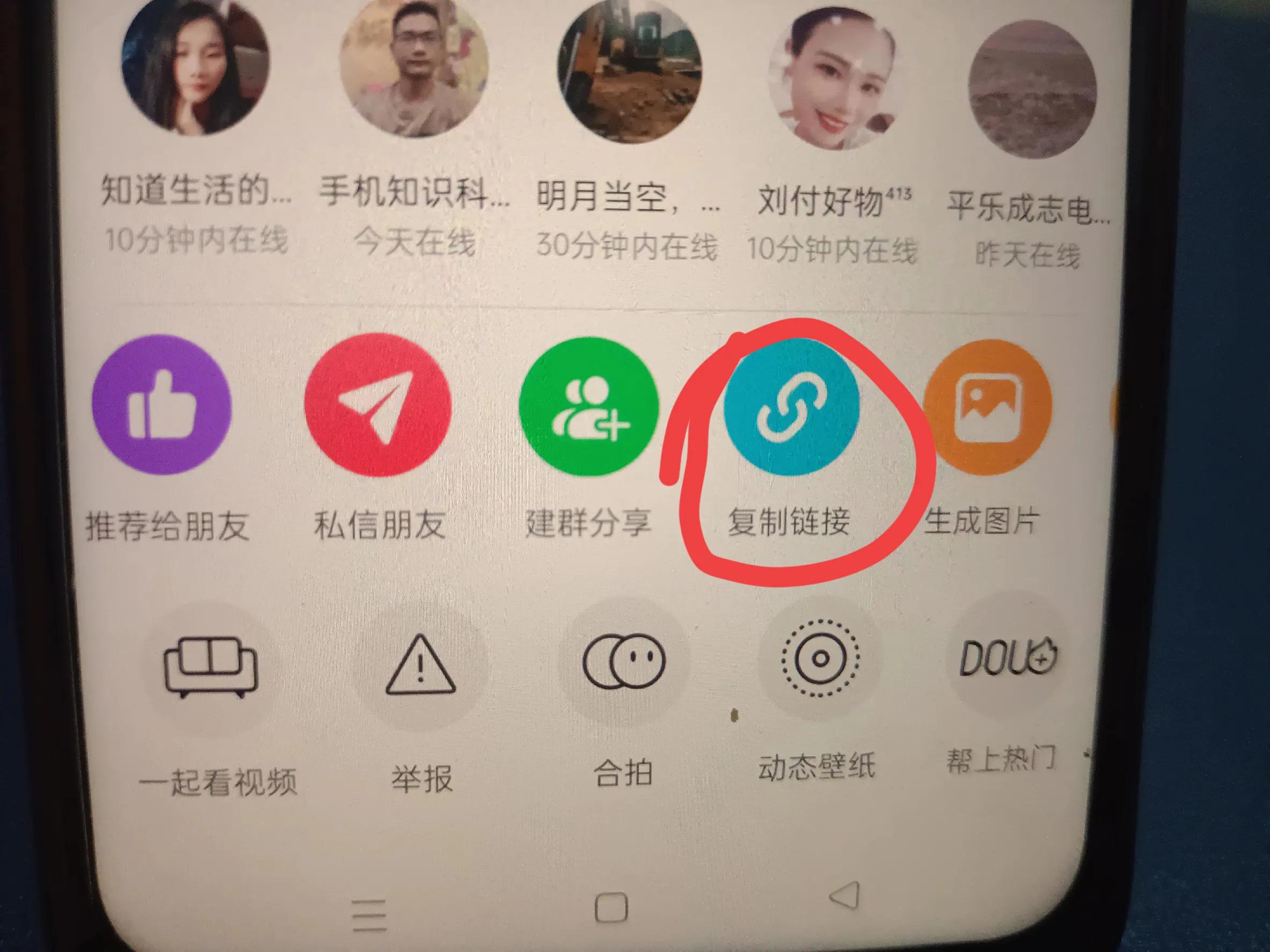 我们先返回抖音,还是点击这一个转发按钮,点击复制链接。(如上图所示)